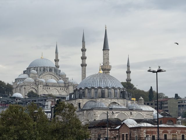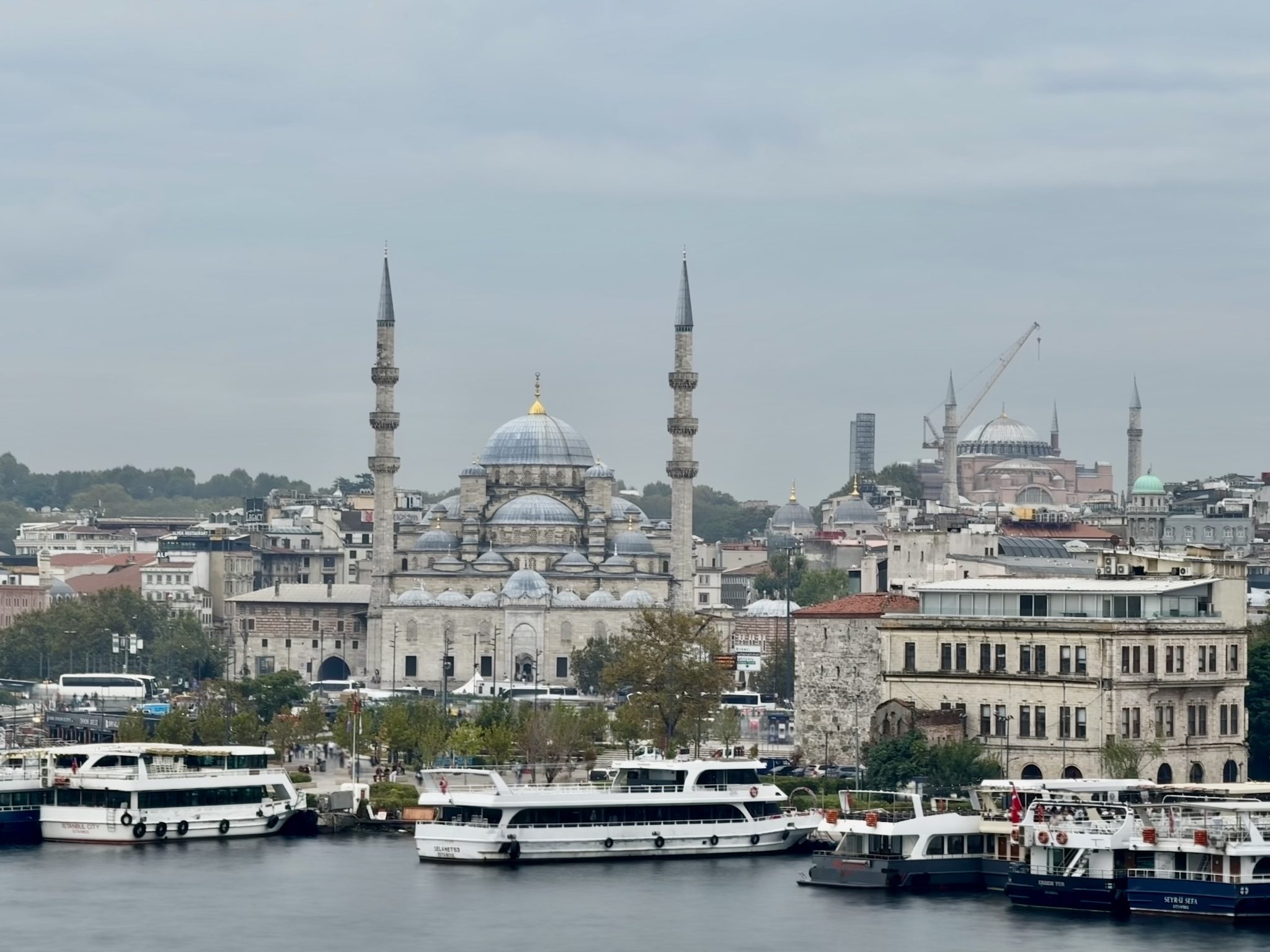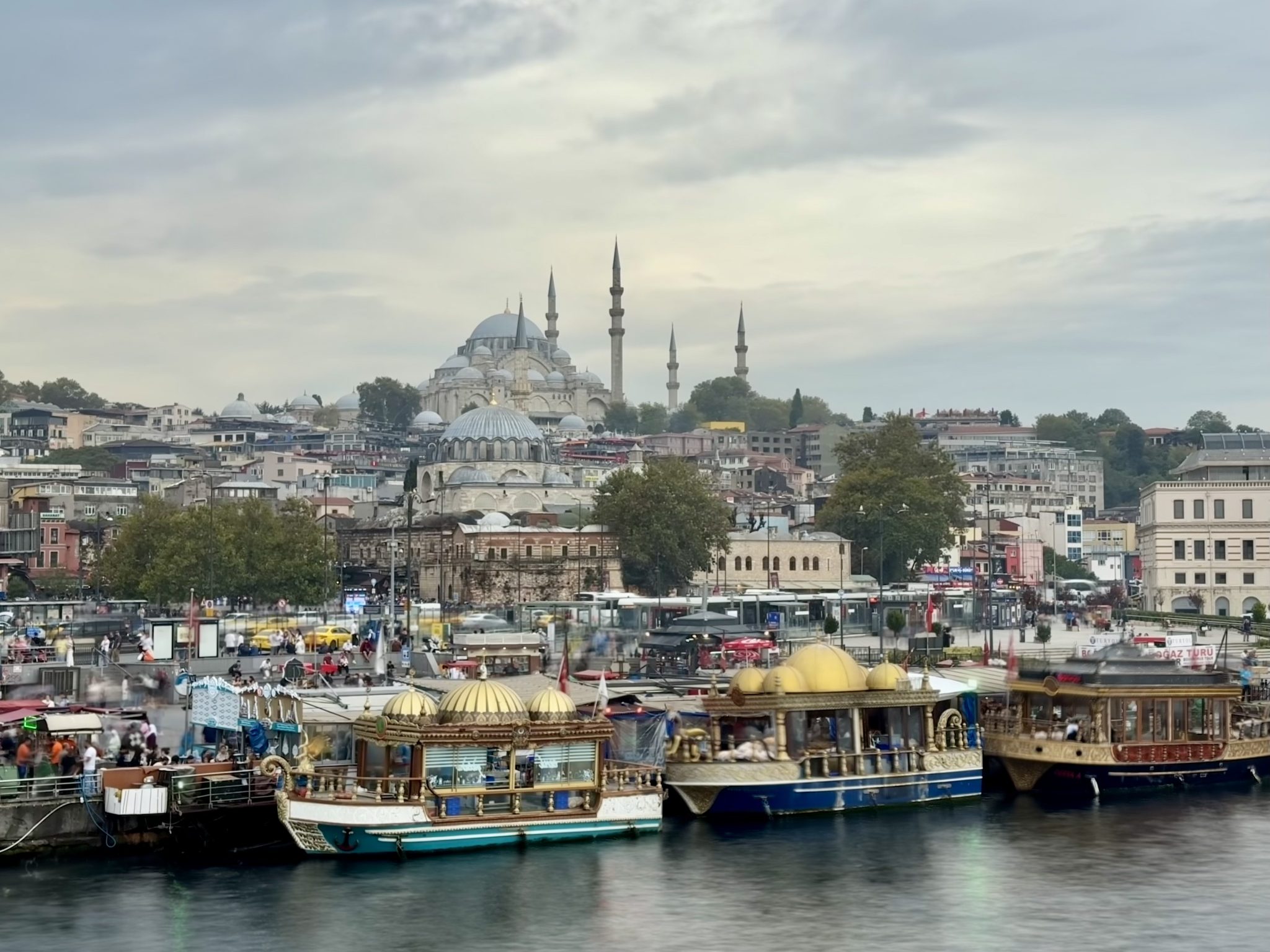 Hoàng hôn ở khu Eminönü là một trong những khoảnh khắc đẹp nhất tại Istanbul — nơi ánh sáng cuối ngày nhuộm vàng mặt nước, phản chiếu lên những mái vòm cổ kính như Hagia Sophia và Blue Mosque phía xa.