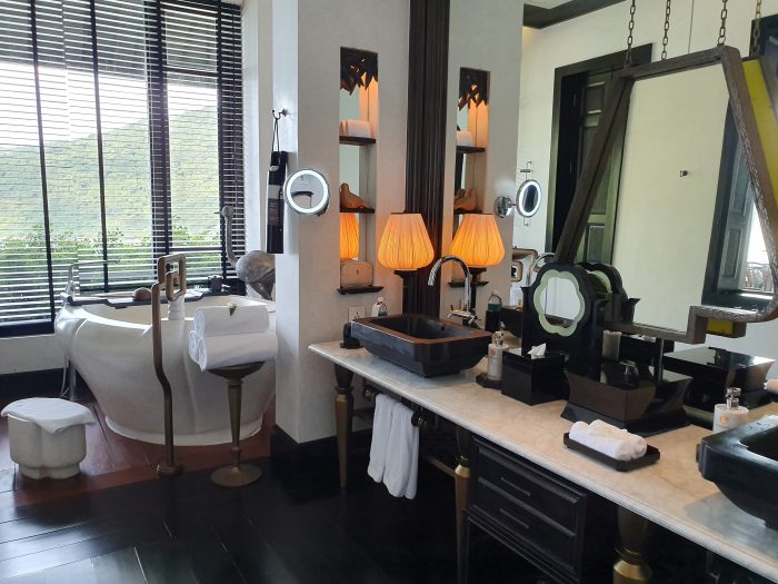 Ở đây có phòng và biệt thự riêng. Giá phòng thì dao động tầm 10 triệu một đêm tùy vào mùa và các thời điểm khuyến mãi hoặc cao điểm. Giá biệt thự ba phòng ngủ thì bắt đầu tầm 70 triệu một đêm và có thể nhiều hơn tùy vào biệt thực bạn muốn chọn. Mình may mắn là được ở cả phòng và biệt thự nên mình muốn chia sẻ cả 2.